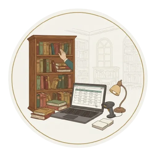 Essential cataloging service for small collections up to 100 volumes. Includes basic metadata entry and digital organization.
